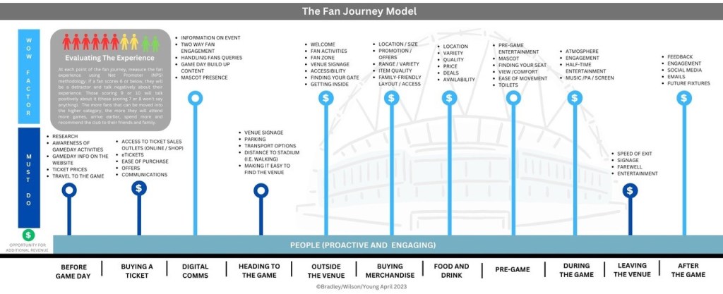 Why does it work? It is simply because identifying the key touch points that a supporter experiences on game day gives a sports club or event owner the opportunity to experience the journey from a fan’s perspective. It can help them to understand the impact of the experience on the fan’s emotions too.