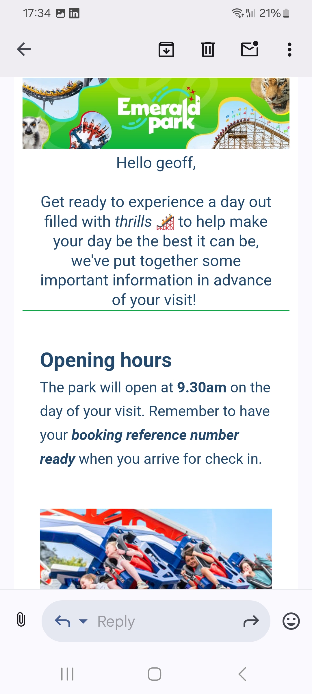 Prior to our visit, we received an informative email that included all the necessary details about the park, such as opening hours, ticket information and tips for making the most of our visit. This proactive communication helped us plan our day effectively.